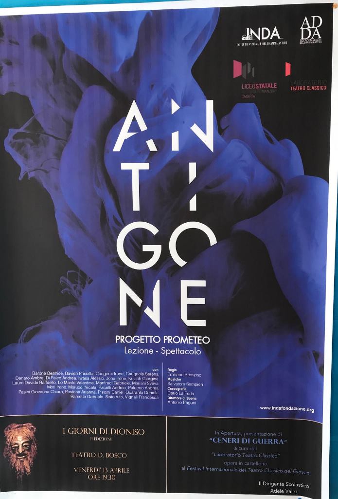 CASERTA – Anche quest’anno il liceo Manzoni di Caserta ospita l’Accademia d’Arte del Dramma Antico di Siracusa. Venerdì 13 aprile 2018, infatti, alle ore 19.30, al teatro don Bosco di Caserta ci sarà la rappresentazione della lezione-spettacolo “Antigone”. I ragazzi del primo anno dell’Accademia diretti da Emiliano Bronzino porteranno in scena una loro versione dello spettacolo. Già dalla mattina gli studenti del Manzoni e quelli del liceo Garofano di Capua saranno impegnati a teatro per la visione dello spettacolo in virtù di un rapporto consolidato ormai dal protocollo d’intesa che il liceo Manzoni ha stipulato con l’INDA, l’Istituto Nazionale del Dramma Antico. L’Accademia d’Arte girerà in tour tutta l’Italia e farà tappa a Caserta ospite del liceo Manzoni per lo spettacolo al teatro don Bosco delle 19.30 di venerdì aperto alla cittadinanza. L’occasione dello spettacolo serale aperto alla cittadinanza, sarà per gli studenti del laboratorio del liceo classico del Manzoni l’opportunità per presentare una piccola anteprima di quella che sarà l’opera da rappresentare in Sicilia, durante il festival del Teatro Antico. Con questo spettacolo, intitolato “Ceneri di Guerra” – un lavoro curato per i testi da Almerinda Della Selva – il liceo Manzoni prova così a dare in forma laboratoriale una piccola anticipazione di quello che sarà lo spettacolo vero e proprio portato in scena in Sicilia. La serata sarà presentata dal giornalista Antonio Luisè.