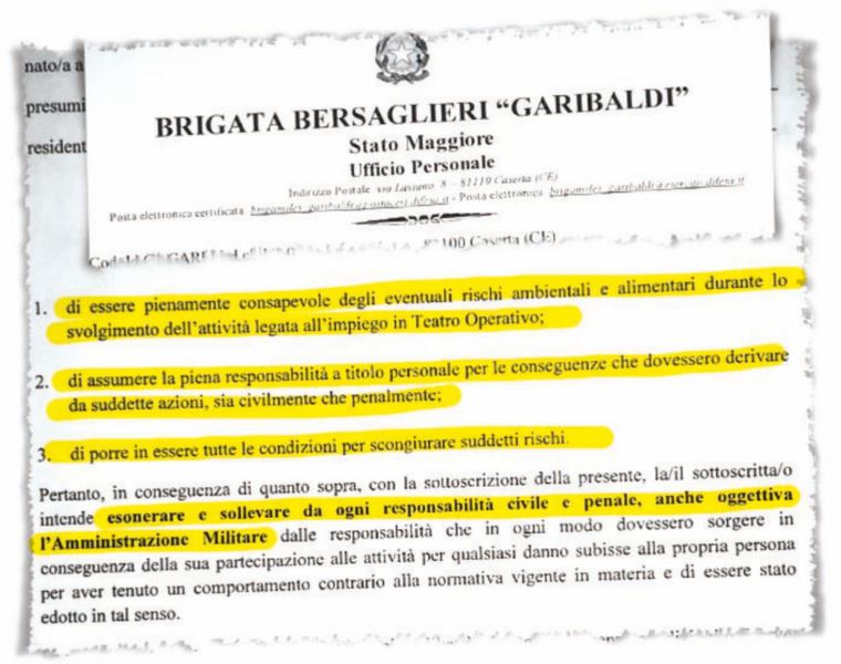 CASERTA – Ecco, di seguito, la posizione, ufficiale, dell’Esercito Italiano espressa in seguito alla pubblicazione su un quotidiano italiano dal titolo: “I nostri militari all’estero: A loro rischio e pericolo”: “In merito all’articolo pubblicato questa mattina su “Il Fatto Quotidiano”, relativo ad una dichiarazione liberatoria fatta firmare ai soldati della Brigata Garibaldi a premessa del loro impiego in Teatro Operativo, si precisa che si tratta di un’iniziativa impropria in quanto né lo Stato Maggiore dell’Esercito né altri Comandi hanno mai dato disposizioni in tal senso. Non esiste infatti alcun precedente riconducibile a questa casistica in quanto tale atto non rientra nelle direttive di approntamento emanate dallo Stato Maggiore dell’Esercito. Si tratta di un errore interpretativo a cui si è posto rimedio dando immediatamente l’ordine di cessare la distribuzione del “documento” al personale, e di ritirare quelli eventualmente già compilati e sottoscritti. Peraltro, i militari in missione sono edotti sia durante la fase di approntamento (a cura del reparto interessato) sia nella fase di “in processing” all’atto dell’arrivo in Teatro Operativo (a cura di personale del contingente) delle precauzioni e dei comportamenti da adottare in missione. La Forza Armata, oltre ad avviare il necessario approfondimento d’indagine interno, sta procedendo alla valutazione/adozione dei necessari provvedimenti nei confronti del personale responsabile”.