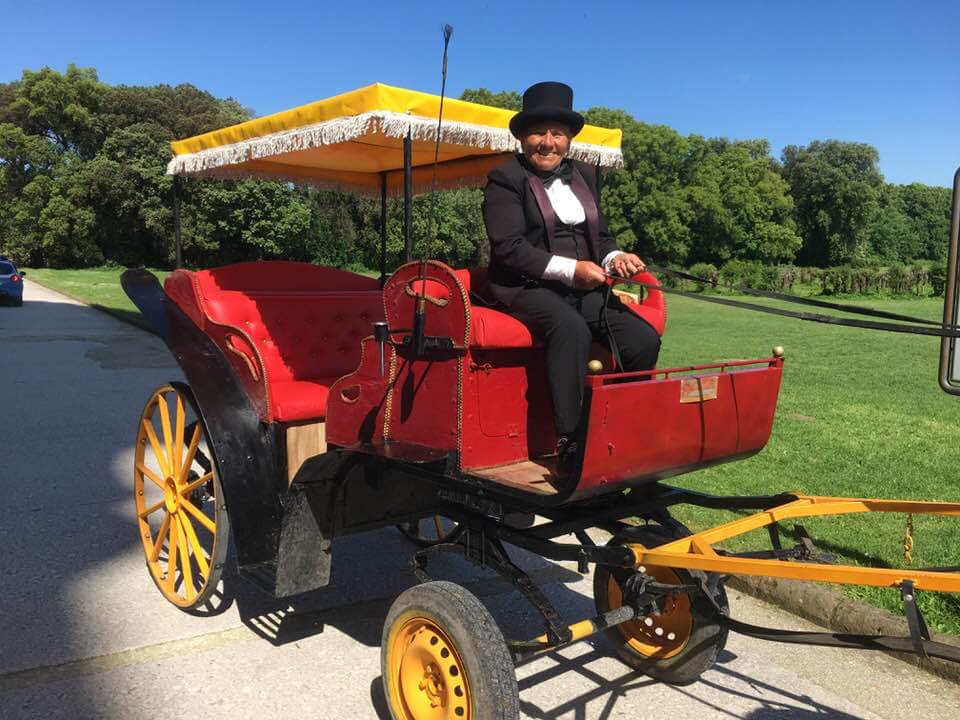 CASERTA.Tante persone pronte a farsi una foto vicino a quella carrozzella praticamente rimessa a nuova, la signora, una cocchiera vestita in modo impeccabile e professionale pronta ad accompagnare i turisti in giro per i giardini dello splendido sito Borbonico.