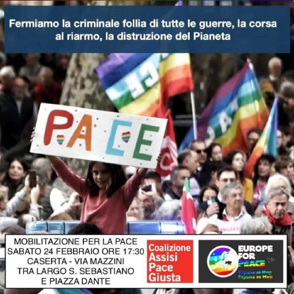 Con l’obiettivo di porre fine ad un orrore che non può diventare un’abitudine, alla logica distruttiva che nasce dallo scontro tra blocchi per mantenere l’ordine mondiale, anche nella Città di Caserta si aderisce alla mobilitazione per la pace.