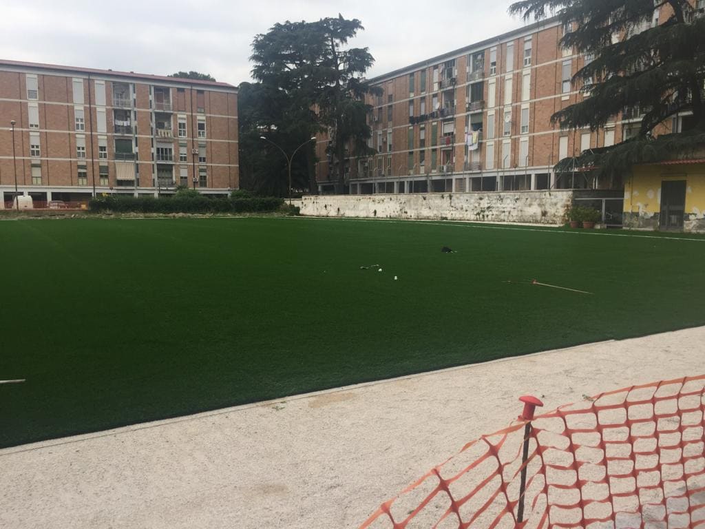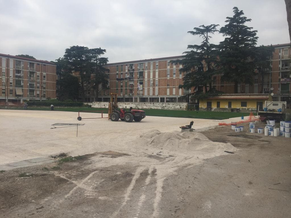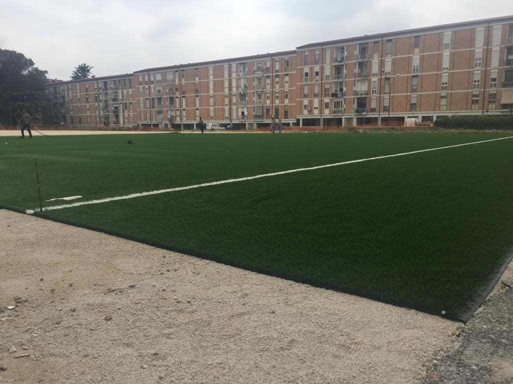 Entro la metà del mese di luglio, infatti, il Centro sportivo, realizzato all’interno del quartiere, sarà pronto per essere inaugurato: un campo di calcio in erba sintetica (che potrebbe essere usufruito dalle giovanili della Casertana Calcio); un campetto di calcetto sempre in erba sintetica che sarà gestito in modo autonomo dal Comitato di Quartiere e dalla Parrocchia di don Antonello Giannotti; degli spogliatoi; un parcheggio per i residenti e un parco giochi inclusivo per i bambini.