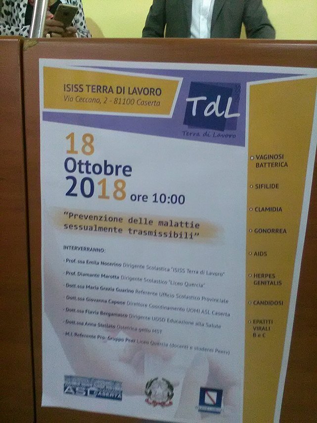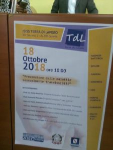 CASERTA – incontro all’ ITC Terra di Lavoro di via Ceccano, ribattezzato ISISS Terra di Lavoro a Caserta, sulle malattie sessualmente trasmissibili soprattutto tra adolescenti, in un progetto che ha coinvolto alunni di varie scuole tra cui l’istituto liceo scientifico Quercia di Marcianise, a far da relatori ed ‘apri pista’ la dirigente e preside dell’Isituto di Caserta Emilia Nocerino, il preside dell’Istituo Quercia Diamante Marotta, con tutto il team di docenti che hanno lavorato al progetto ossia la dott.ssa Flavia Bergamasco dirigente dell’UOSD educazione alla salute, Giovanna Capone direttore e responsabile del coordinamento materno infantile UOMI dell’ ASL  Caserta 1, Anna Stellato ostetrica, Maria Grazia Guarino referente ufficio scolastico provinciale ed infine la dott.ssa Salvini, psicologa.