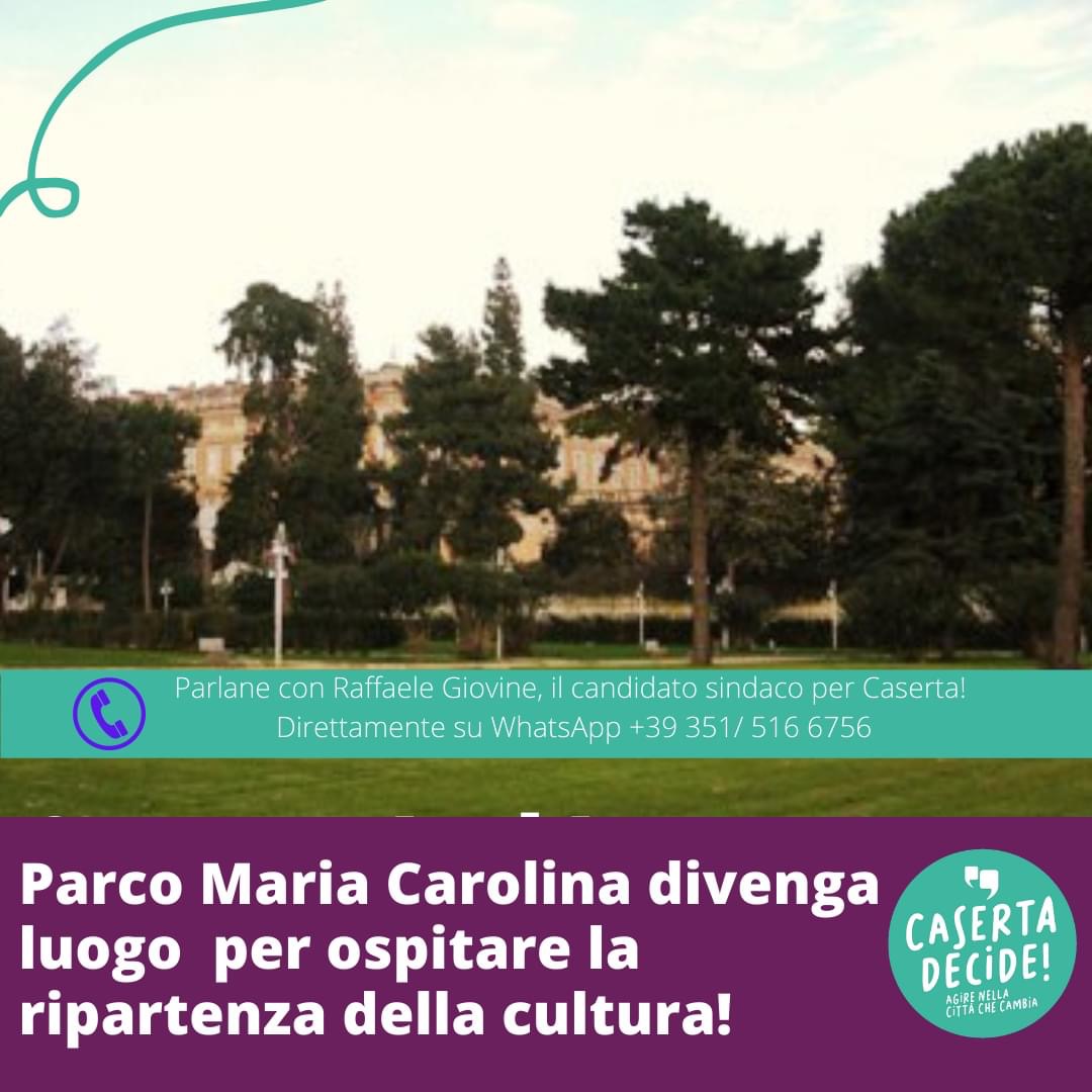Il movimento civico Caserta decide, rappresentato da Raffaele Giovine candidato a sindaco alle elezioni amministrative 2021, ieri ha pubblicato un post-proposta su Facebook e su Instagram, riguardante l’utilizzo dei parchi della città a favore di eventi culturali gratuiti che coinvolgano i concittadini.