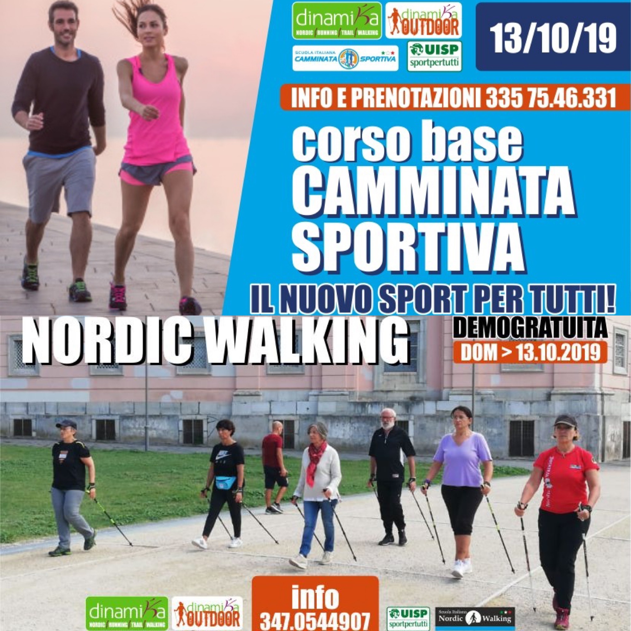 Domenica 13 ottobre alle ore 9.00 nello spazio antistante la Reggia di Caserta conosciuto come “Campetti” si terrà un corso di camminata sportiva . Il corso sarà tenuto Vincenzo de Matthaeis della DinamiKa ASD di Caserta, Istruttore Federale SICS (Scuola Italiana Camminata Sportiva). Alla fine del corso, che durerà circa 2h e 30’ è prevista una Sessione vera e propria di Camminata Sportiva per mettere subito in pratica la tecnica appresa.