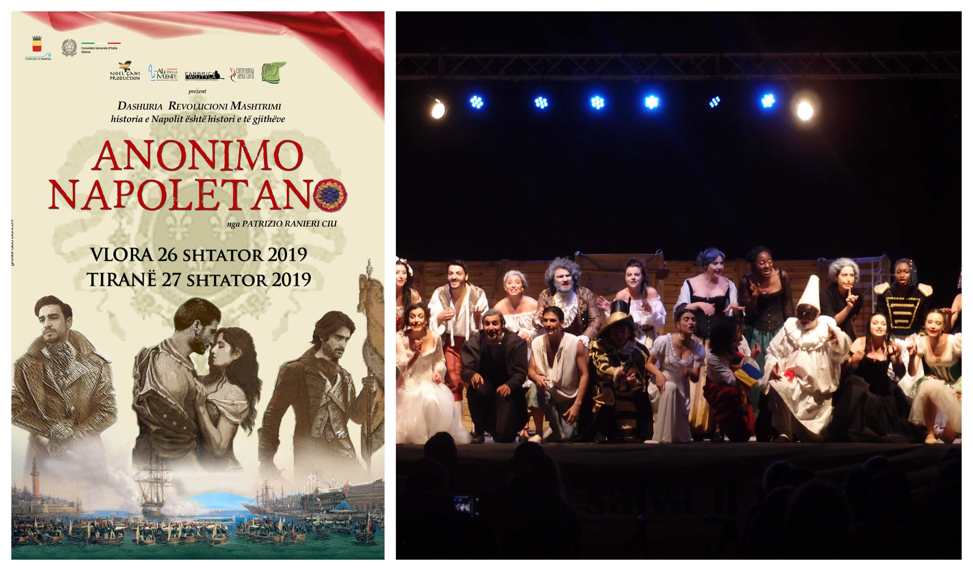 La Compagnia teatrale Fabbrica Wojtyla in terra d’Albania con lo spettacolo “Anonimo Napoletano”, apprezzato dal grande pubblico e dalla critica nazionale (vedi per tutti il recentissimo articolo del filosofo Galimberti su D di Repubblica), in scena a Valona il 26 settembre nel prestigioso Teatri Petro Marko, ed il giorno seguente 27 settembre al Teatri Kombetar di Tirana, come gesto di solidarietà nei confronti dei fratelli albanesi, per sensibilizzare l’attenzione dell’Italia all’Albania colpita in questi giorni dal terremoto