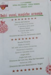 Il Concerto quest’anno si divide in due momenti canori: il primo è stato preparato, diretto ed accompagnato al pianoforte dalla maestra Annamaria LEARDI e si ascolteranno le voci bianche degli alunni dell’infanzia e del 1° e 2° anno della primaria.