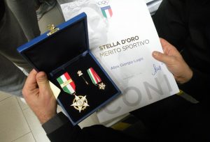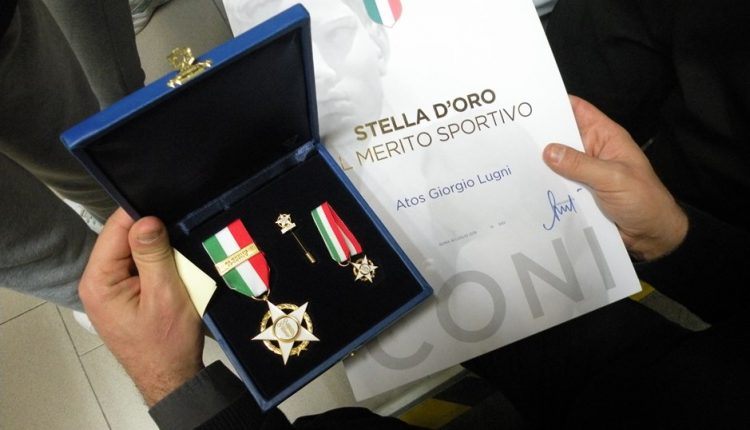Il primo a ricevere la più alta onorificenza sportiva è stato Atos Giorgio LUGNI al quale è stata assegnata e consegnata la Stella d’Oro al Merito Sportivo con la seguente motivazione: “….. Il CONI ha conferito ad Atos Giorgio Lugni la Stella d’Oro al Merito Sportivo per l’anno 2018 in riconoscimento delle benemerenze acquisite nella sua attività dirigenziale. Con questa onorificenza l’organizzazione sportiva nazionale, oltre che attestare le tue capacità ed i risultati conseguiti in tale attività, desidera anche esprimerti profonda riconoscenza per la generosa collaborazione e l’impegno dedicati allo Sport in tanti anni di servizio…..”.