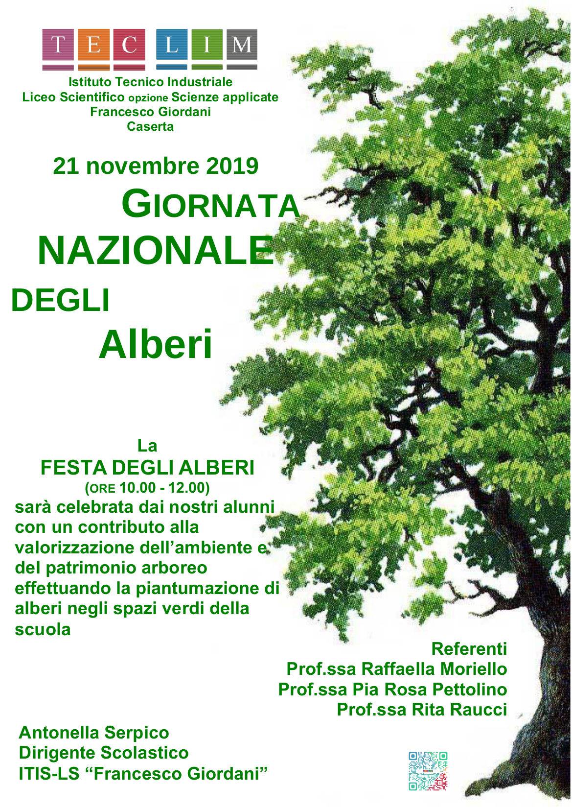 La Dirigente Scolastica dell’ITI-LS  ”F. Giordani “ di Caserta, dott.ssa Antonella Serpico, sempre sensibile alle tematiche ambientali e  attiva nell’organizzazione di eventi che possano suscitare negli studenti una nuova coscienza del territorio ed un nuovo rapporto con l’ambiente, in occasione della  – Giornata nazionale degli Alberi– istituita dal Ministero dell’Ambiente e della tutela del territorio e del mare e riconosciuta con l’art.1 della Legge 14 gennaio 2013 n.10, promuove  la – Festa degli Alberi.