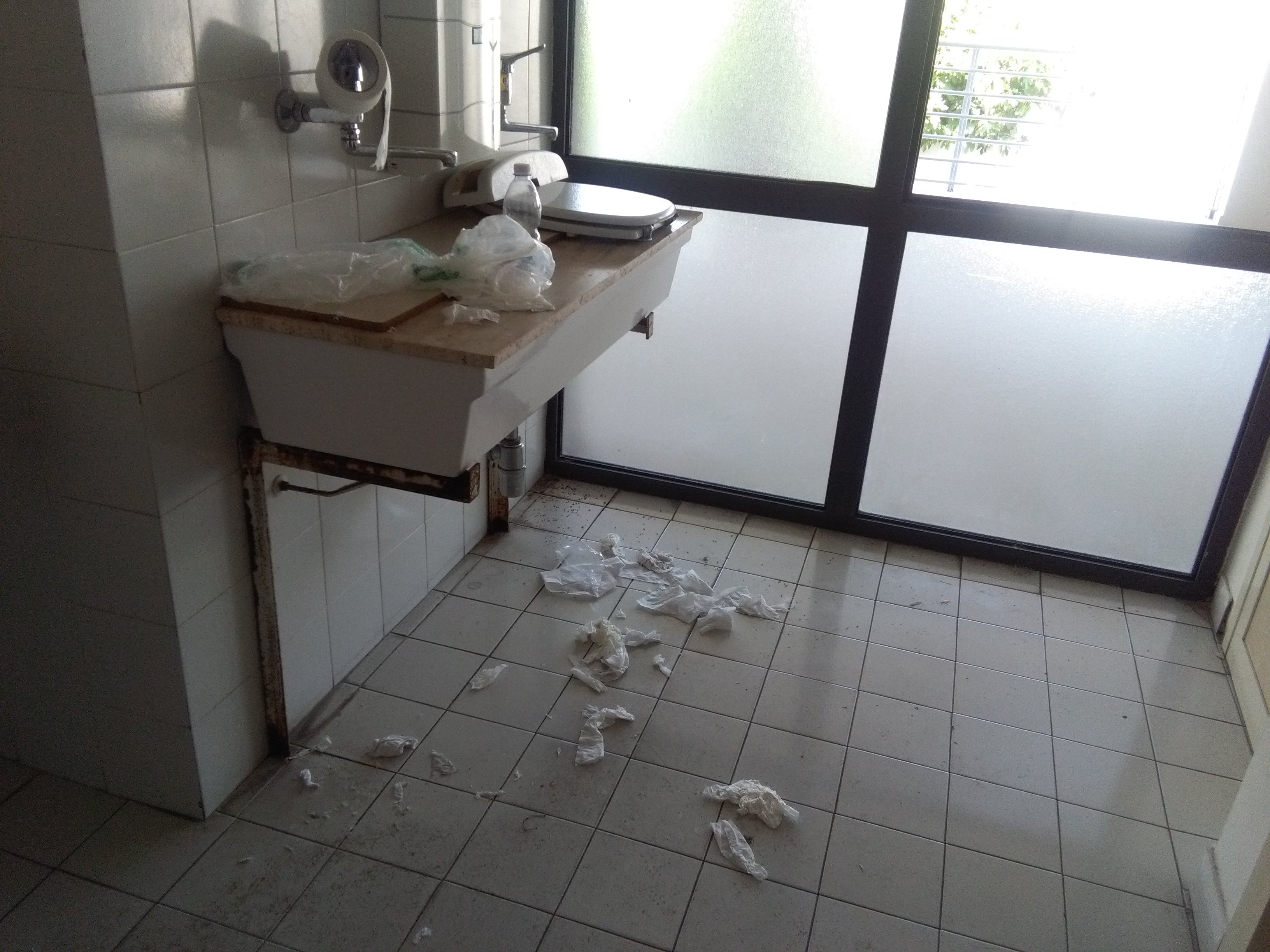 Se gli uffici sono ancora frequentabili perche’ in condizioni piu’ o meno accettabili , i bagni sono al limite di ogni degoroso e umano concetto di pulizia. Carta igienica dapertutto, servizi igienici sporchi con conseguente ed inevitabile puzza.
