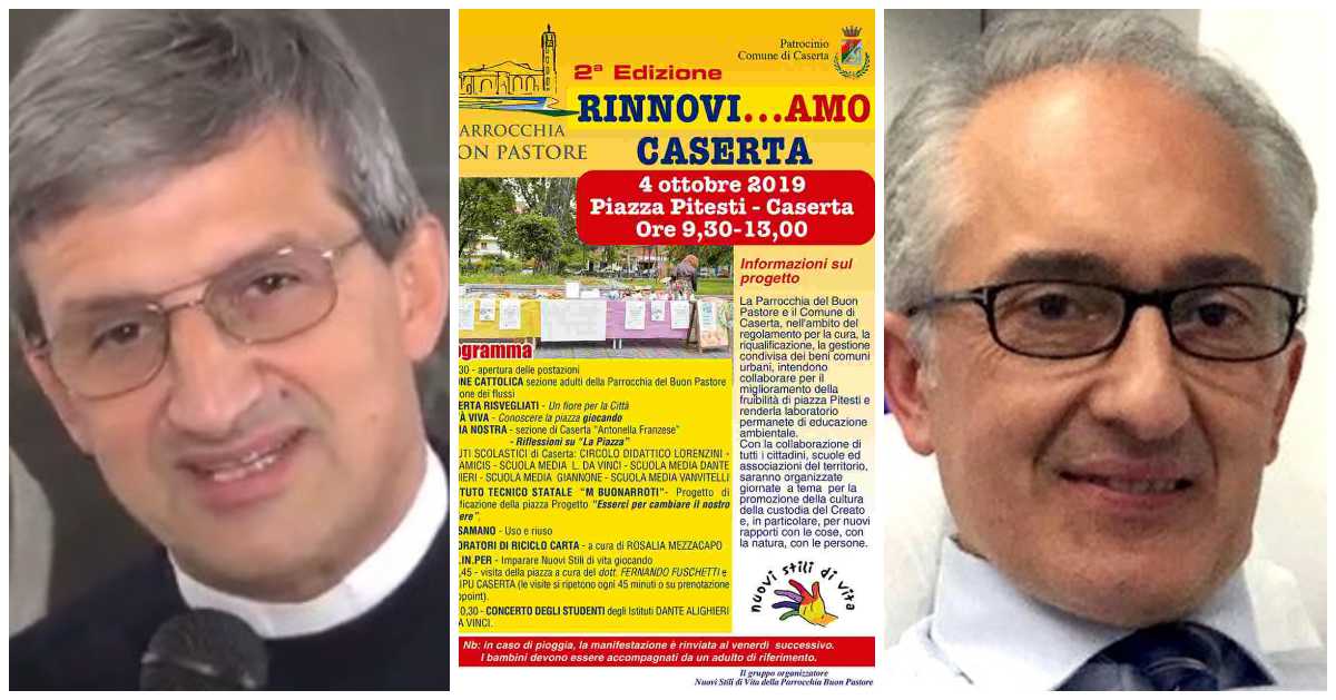 CASERTA – Si terrà venerdì 4 ottobre, dalle ore 9:30 alle ore 13, in Piazza Pitesti, la manifestazione “Rinnovi…AMO Caserta”, giunta alla sua seconda edizione. La Parrocchia del Buon Pastore, di cui è parroco don Antonello Giannotti, e il Comune di Caserta, nell’ambito del regolamento per la cura, la riqualificazione, la gestione condivisa dei beni comuni urbani, intendono collaborare per migliorare la fruibilità di Piazza Pitesti e renderla al contempo laboratorio permanente di educazione ambientale.
