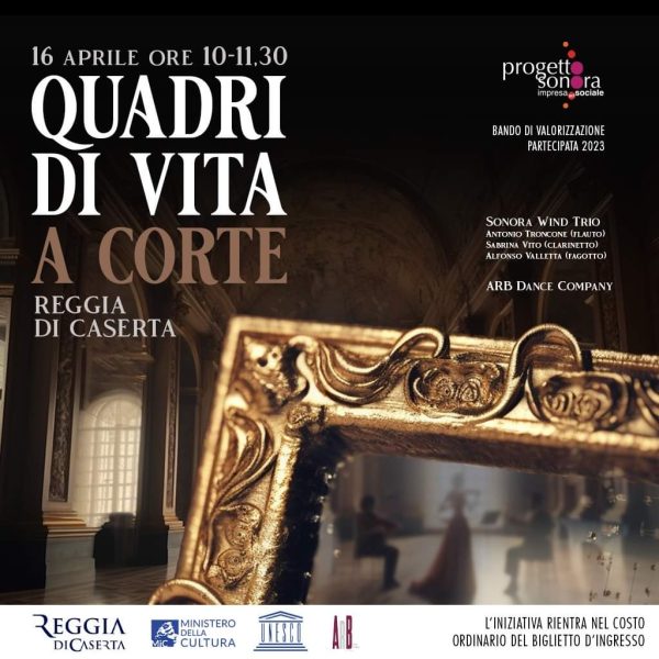 Organizzata da Progetto Sonora con l’associazione di Danza Arabesque, “Quadri di vita a corte” è un’iniziativa che stabilisce un ponte tra le attività di ricerca musicologica e le attività di ricerca, restauro, ripristino e ridefinizione degli spazi espositivi e museali che la Reggia di Caserta porta avanti nell’ambito della valorizzazione del proprio patrimonio di beni culturali e ambientali anche con iniziative multidisciplinari.