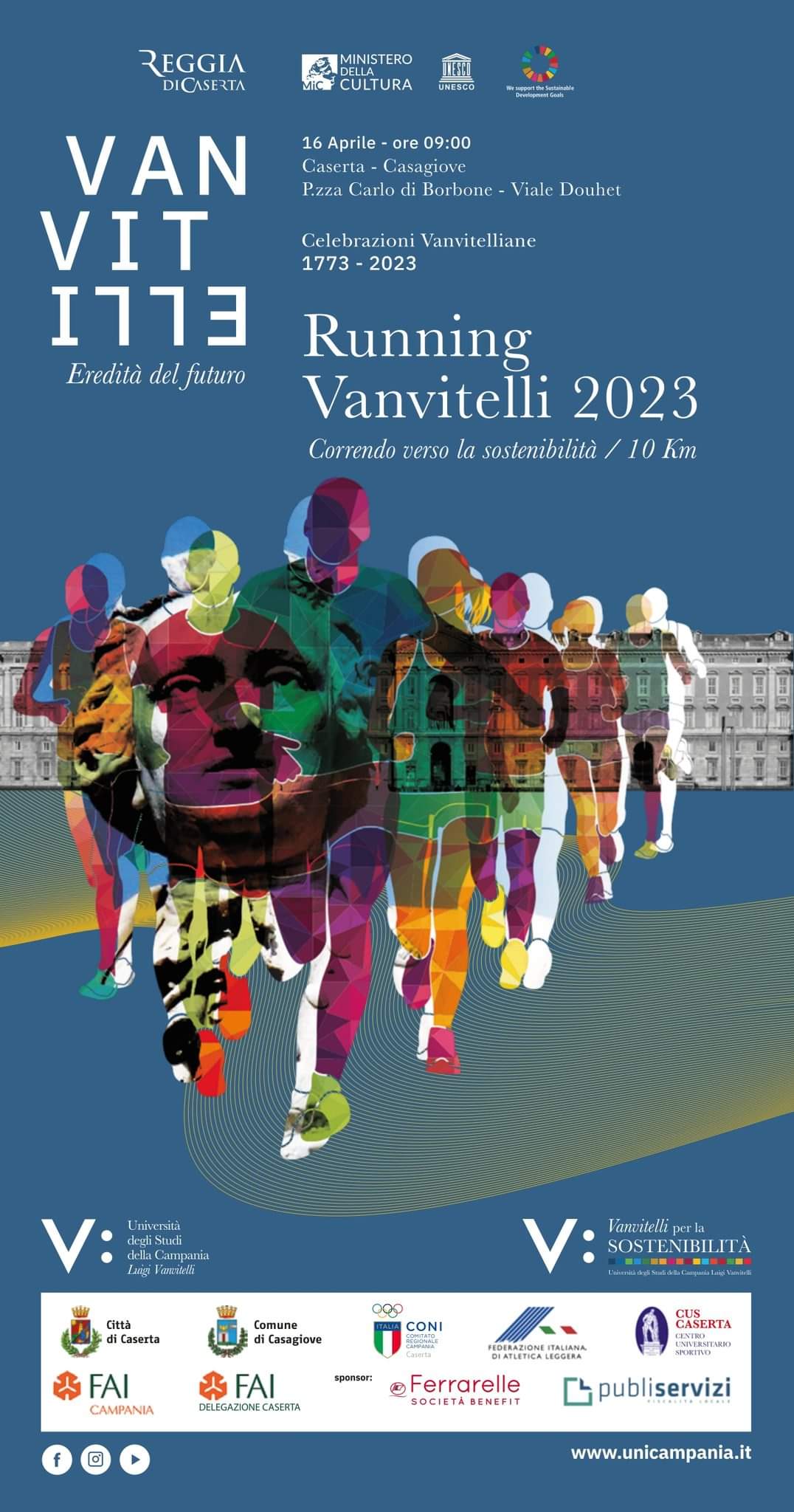 -Running Vanvitelli 2023 | Correndo Verso la Sostenibilità, organizzato dall’Università degli Studi della Campania “Luigi Vanvitelli”, un percorso di 10 km che attraverserà i luoghi che testimoniano la “presenza” di Luigi Vanvitelli nella Città di Caserta. La gara podistica, un ulteriore appuntamento per celebrare il 250° Anniversario della morte di Luigi Vanvitelli, è promossa dal Comune di Caserta, CUS Caserta, UniCampania, Comune di Casagiove, Reggia di Caserta e FAI.