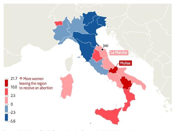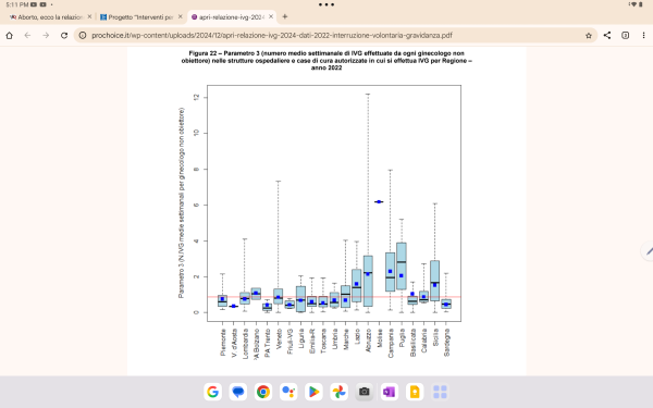 Nella Relazione e’ certificato come in alcune regioni (ad esempio Campania, Puglia e Sicilia) ci sono criticità a carico di diverse strutture. Infatti il numero medio di IVG settimanali per ginecologo non obiettore risulta sensibilmente superiore alla media nazionale lasciando prevedere un numero di medici particolarmente esiguo nel soddisfare la domanda del servizio. In Campania alcune strutture arrivano a un massimo di 8,0 IVG settimanali per ginecologo non obiettore, in Abruzzo un massimo di 12,2 IVG settimanali per ginecologo non obiettore, in Lombardia un massimo di 4 IVG settimanali, in Sicilia un massimo di 6 IVG settimanali, in Puglia un massimo di 5,2 IVG settimanali. Tutto ciò sta a indicare carichi di lavoro particolarmente elevati e potenziali criticità nell’accesso ai servizi IVG a causa della scarsità di ginecologi non obiettori disponibili.