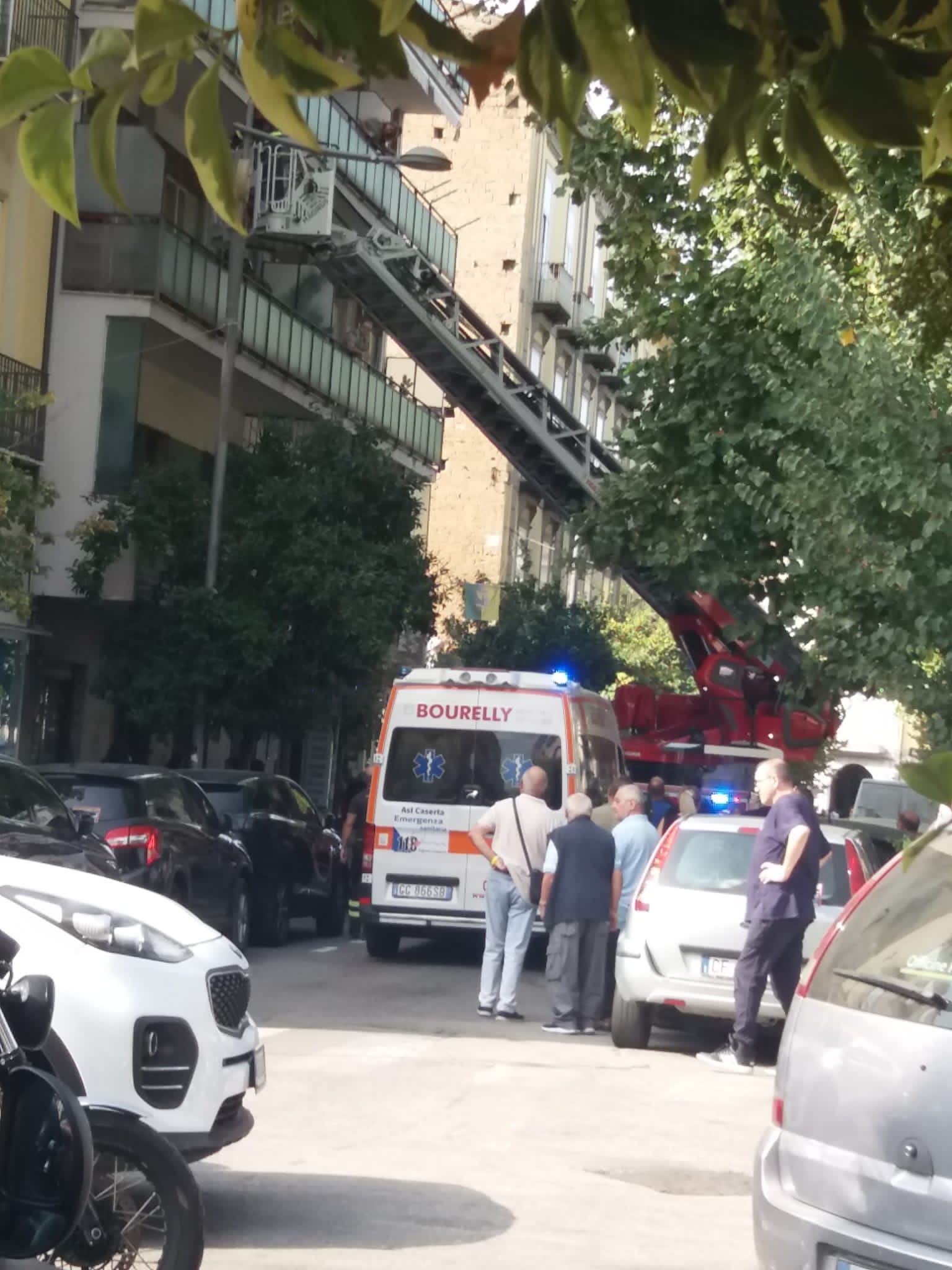 Caserta. Momenti di tensione in Piazza Matteotti dove i Vigili del Fuoco hanno fatto irruzione con la scala in un appartamento al 4 piano .