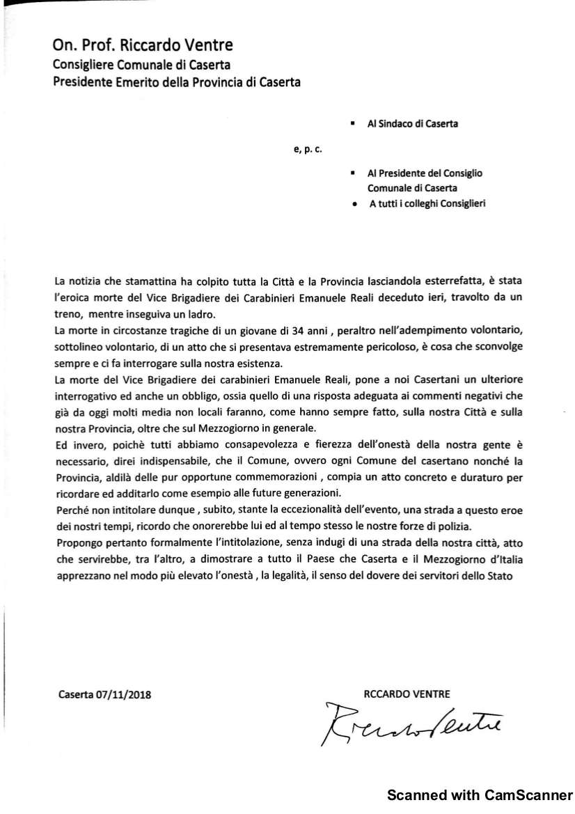 considerato che l’Amministrazione comunale, raccogliendo la spontanea partecipazione dei cittadini, intende manifestare in modo tangibile e solenne il dolore della città, stringendosi intorno alla famiglia Reali ed all’Arma dei Carabinieri; sentito il Prefetto di Caserta; il sindaco ordina la proclamazione del lutto cittadino per la giornata di venerdì 9 novembre 2018, giorno nel quale si svolgeranno le esequie del Vice Brigadiere dell’Arma dei Carabinieri Emanuele Reali, in segno di cordoglio e vicinanza dell’intera Città alla famiglia Reali e all’Arma dei Carabinieri;