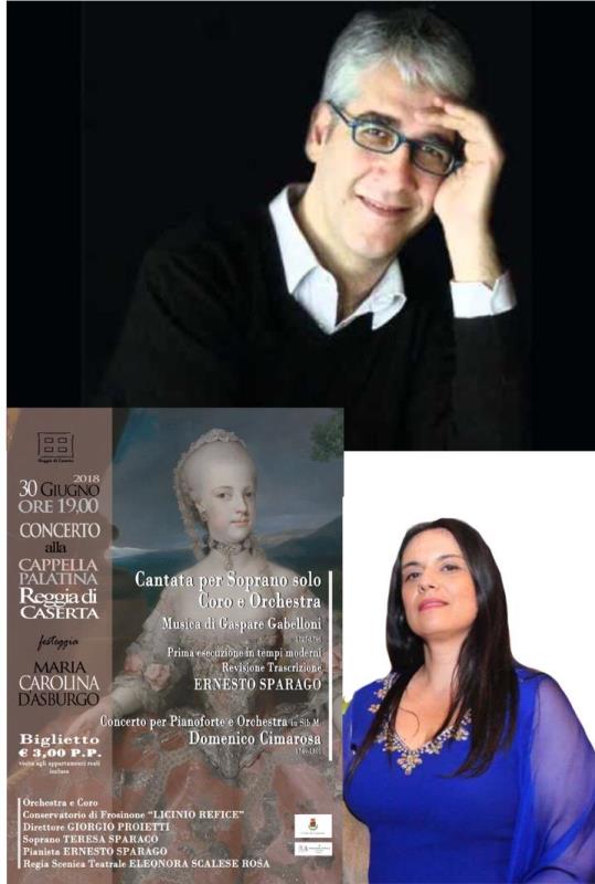CASERTA – Il 30 Giugno 2018 alle ore 19.00 nel palazzo Reale di Caserta, nella Cappella Palatina, si terrà un concerto ideato dal maestro Ernesto Sparago ed Eleonora Scalese Rosa sulla figura storica di Maria Carolina D’Asburgo. Il concerto prevede, in prima esecuzione in tempi moderni, la cantata per soprano solo ed orchestra di Gasparo Gabbelloni (1727-1796), ritrascritta dal maestro Ernesto Sparago studioso della scuola musicale del settecento Napoletano