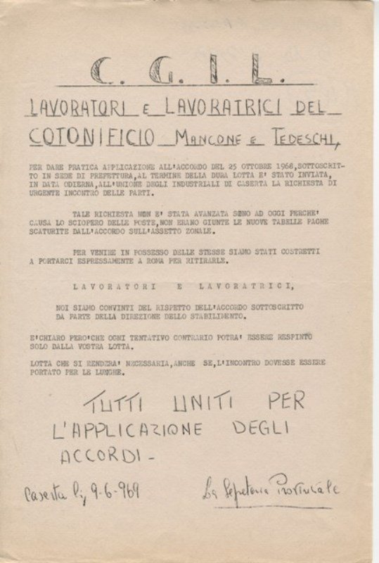 manifesti, volantini, documenti della CGIL e dei partiti politici e dei movimenti giovanili tratti dai fondi archivistici di Giuseppe Capobianco e Paolo Pietro Broccoli,