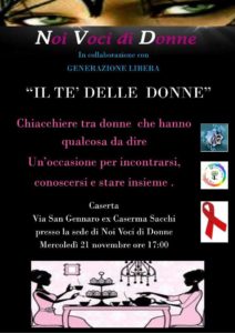 “La nostra settimana sarà piena di iniziative – afferma Daniela Monfreda, psicologa della associazione. Mercoledì 21 novembre dalle 10 alle 12 incontreremo gli studenti del liceo Pizzi di Capua e nel pomeriggio alle 17, presso la nostra sede di via San Gennaro, ci sarà un incontro informale intitolato Il te delle donne per affrontare e discutere insieme la questione di genere e la violenza di genere.