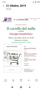 Sabato 26 ottobre 2019, alle ore 18, presso la libreria “La Guida” di via Caduti sul Lavoro – Caserta, sarà presentato il  libro “Il carrello del nulla” del noto scrittore “Giuseppe Santabarbara”, edito da Brignoli Edizioni Caserta.