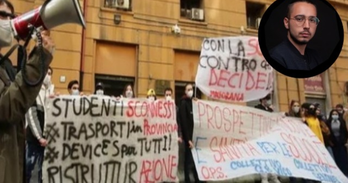 In Campania le scuole superiori hanno ripreso la didattica in presenza, al 50 per cento in virtù delle norme anti covid, il 1 febbraio dopo mesi di Dad. Diversi gli striscioni esposti davanti la Regione Campania : «La didattica a distanza non può sostituire la didattica in presenza e con questo 50 e 50 un po tutti gli istituti si stanno trovando male, perchè può capitare che il prof. da conto solo a chi è in presenza, prestando meno attenzione a chi è a casa, oppure avviene che una spiegazione fatta alla lavagna, non viene visualizzata. All’ITIS Giordani, che è una scuola che possiamo definire all’avanguardia, perchè ha le lim è siamo facilitati, ma io rappresento anche chi non ha questi mezzi». In piazza tanti studenti .