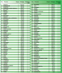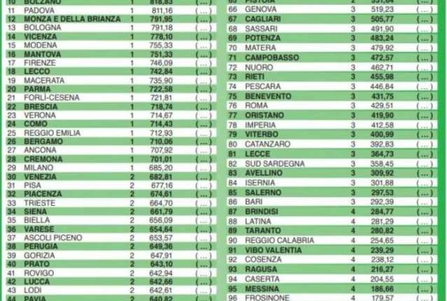 CASERTA – Come ogni anno viene pubblicata la classifica annuale sulla Qualità della Vita delle province italiane elaborata da “ItaliaOggi” e dall’Università “La Sapienza” di Roma, in collaborazione con “Cattolica Assicurazioni”, giunta oramai alla sua 21esima edizione. In generale, al Nord si vive meglio che al Sud e non c’era bisogno “della zingara per indovinare” un dato di fatto lapalissiano.
