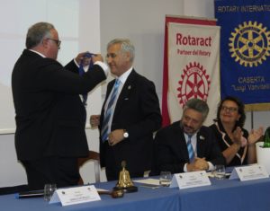 alla presenza dell’intera famiglia rotariana e di autorità civili e politiche. Presenti al tradizionale scambio del collare, l’Assistente del Governatore Rotary Distretto 2100 per l’a.R. 2018/2019 Michelangelo Riemma, il Governatore Distretto Rotary 2100 per l’a.R. 2016/2017, nonché Presidente del Rotary Club Napoli Angioino per l’a.R. 2018/2019, Gaetano De Donato, il Presidente della Commissione Finanza e Buona Amministrazione del Rotary Distretto 2100 per l’a.R. 2018/2019 Salvatore Striano, il Presidente del Rotary Club Caserta Reggia per l’a.R. 2018/2019 Roberto Mannella, il Presidente del Rotary Club Aversa Terra Normanna per l’a.R. 2017/2018 Alfredo Sagliocco , il già Presidente del Rotary Club Caserta Terra di Lavoro e del Rotary Club Capua Antica e Nova, nonché Delegato Speciale per la costituzione del Club Luigi Vanvitelli Guido Perrotta e il Presidente del Rotaract Club Caserta Luigi Vanvitelli Lorenza Parente, il Presidente Inner Wheel Club Ercolano Ville Vesuviane per l’anno sociale 2018/2019 Nunzia Langella, il Presidente del Lions Club Caserta Vanvitelli Francesco Parretta, il Presidente del Lions Club Caserta Reggia Domenico Moriello, il presidente del Lions Club HOST Caserta Alberto Martucci. Anche il Sindaco della città di Caserta Carlo Marino, insieme all’Assessore comunale alle attività produttive e agli eventi Emiliano Casale, non sono voluti mancare all’evento per sottolineare la particolare amicizia che li lega al Club casertano