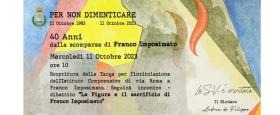 Sono trascorsi 40 anni dalla tragica morte di Franco Imposimato, sindacalista, vittima di una vendetta trasversale per intimidire il fratello, il Giudice Ferdinando Imposimato. Maddaloni ricorda Franco Imposimato, nell’anniversario della sua scomparsa avvenuta l’11 ottobre 1983, con numerosi appuntamenti nell’arco della giornata: