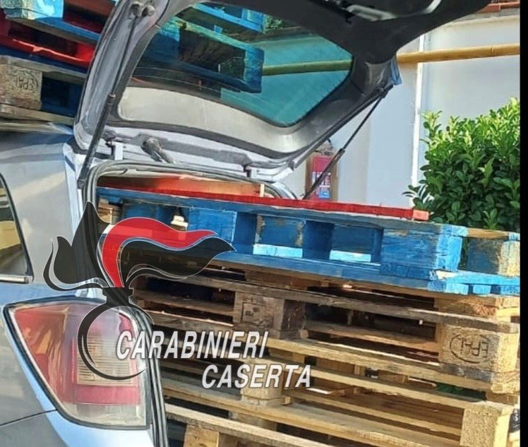I militari dell’Arma poco dopo le 07.00, nel corso di un servizio di controllo del territorio hanno sorpreso la coppia in via Einaudi a Caserta mentre, nell’area posteriore all’attività commerciale “Super Store”, stavano asportando 20 pedane in legno.