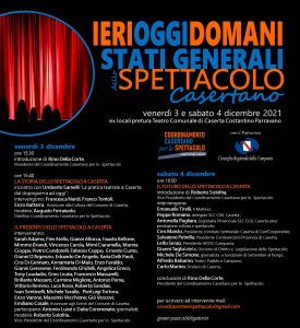 Caserta-Per la prima volta a Caserta viene organizzato un dibattito dedicato agli eventi dal vivo. Ieri, oggi e domani – Stati generali dello Spettacolo è l’incontro disposto dal Coordinamento Casertano dello spettacolo previsto per il 3 e il 4 dicembre, presso i locali accanto al teatro Parravano, una volta appartenenti alla procura. Il collettivo – promosso da Flex Aiello, Giovanni Allocca, Vincenzo Carola, Dalia Coronato, Rino Della Corte, Augusto Ferraiuolo, Gianni Genovese, Brillante Massaro, Antonio Perna, Giuseppe Romano, Roberta Sandias, Roberto Solofria, Enzo Varone – è nato lo scorso prima maggio, durante un flashmob dedicato alla messa in scena in piena crisi pandemica, e oggi vuole continuare a rivendicare l’idea di affrontare le problematiche appartenenti ai lavoratori del mondo del cinema, della musica e del teatro.