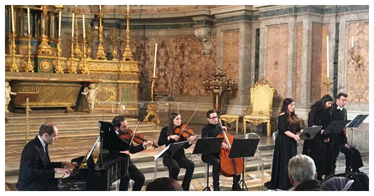 CASERTA. Successo dell’ensemble “L’Arcadia Ritrovata”. L’ensemble ha eseguito magistralmente lo Stabat Mater in fa minore di G.B. Pergolesi presso la Reggia di Caserta, nella cappella Palatina.