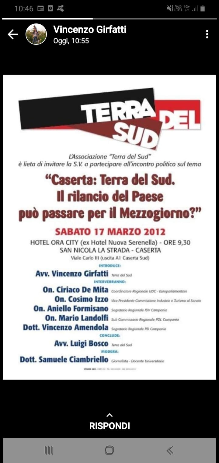 - L’avv.to Vincenzo Girfatti (ex assessore al comune di Caserta che introdurrà i lavori)
