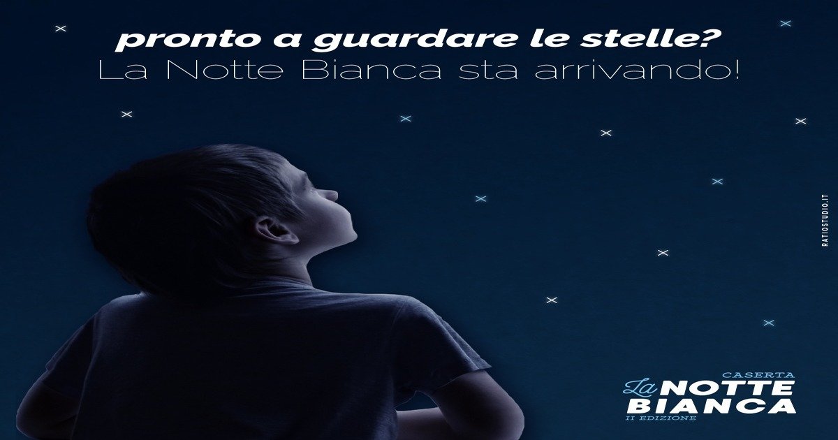 Dopo ben undici lunghi, sabato 8 dicembre dalle ore 19:00 alle ore 03.00 nelle piazze principali della città di Caserta, ritorna la Notte Bianca. Le piazze coinvolte saranno: Piazza Vanvitelli, Piazza Duomo, Piazza Margherita, Piazza Correra, Corso Trieste, Piazza Marconi e Piazza Ruggero. La manifestazione è organizzata dal Comune di Caserta che si avvale della collaborazione dell’Avv. Giampiero Menditto e del suo Comitato Giovani Caserta. I protagonisti principali dell’evento saranno gli stessi spettatori i quali saranno allietati anche dalla presenza di molti artisti locali e nazionali insieme ad una prestanza di stand eno gastronomici.