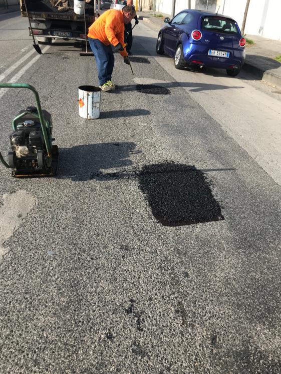 TUTTE LE FOTO Continuano senza tregua i lavori per il rappezzo di ben 700 buche. L’assessore Piazza si apre al dialogo con i casertani