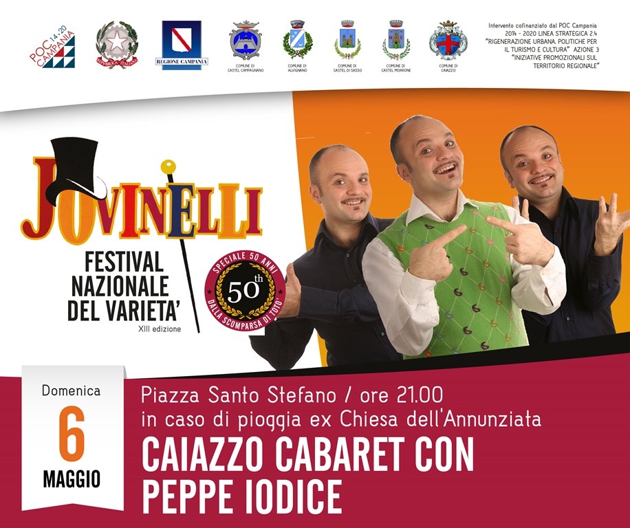 CASERTA – Luciano Capurro con la famosa compagnia del salone Margherita e del Gambrinus di Napoli e Peppe Iodice con il suo esilarante spettacolo di cabaret, saranno i protagonisti assoluti dei prossimi due appuntamenti del Festival nazionale del varietà “Giuseppe Jovinelli”, giunto quest’anno alla sua 13esima edizione e dedicato al grande Totò nel cinquantenario della sua scomparsa, nell’ambito del programma che vede Caiazzo quale comune capofila. Sabato 5 e domenica 6 maggio 2018, a partire dalle ore 21.00, sarà la suggestiva cornice di piazza Santo Stefano, nel cuore del centro storico di Caiazzo, ad ospitare gli spettacoli previsti in cartellone sotto la direzione artistica di Max Giannini. Si tratterà delle ultime due serate del festival Jovinelli che saranno vissute dal capoluogo caiatino, dopo lo straordinario successo riscosso in apertura dalle esibizioni di Carlo Croccolo e Michele Placido e prima dei prossimi eventi programmati a Castel Campagnano, Alvignano e Castel Campagnano. Sabato 5 maggio andrà in scena “LE STELLE DEL CAFE’ CHANTANT”, un revival della Belle Époque dei primi anni del novecento quando nacquero i primi Cafè Chantant che fecero storia e costume popolare nell’Italia post-unitaria. Con la direzione artistica e l’allestimento curate dal cantante-regista Luciano Capurro, lo spettacolo vuole essere un omaggio ad un genere che fece nascere la canzone classica napoletana, vide muovere i primi passi della “Sciantosa” e divertì platee entusiaste con “la macchietta”, con uno spaccato dedicato al magico mondo dell’Operetta. Divertimento assicurato tra comicità, canzoni, balli, virtuosismi ispirati alle memorie di quel mondo di piume, ventagli, cilindri e paillettes che resero indimenticabile la Belle Époque nella città di Napoli. La sera dopo, domenica 6 maggio, invece, spazio al divertimento e alla risata con l’esibizione del cabarettista Peppe Iodice nel suo spettacolo “UNA SERA ALL’IMPROVVISO”, scritto con Lello Marangio. È un recital che si trasforma subito in un happening condito con ospiti e sorprese nel quale l’artista racconta e si racconta spaziando fra i suoi ricordi d’infanzia degli anni ‘80 e le sue nuove esperienze di marito- genitore, con le sue immancabili stilettate contro gli intellettuali, sino a parlare della crisi economica e dell’attualità più pressante.