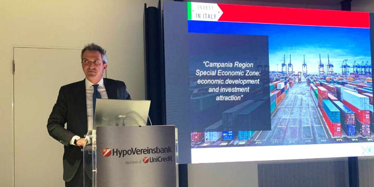 Presso la sede di HVB (Hypo Vereins Bank), istituto di credito tedesco facente parte del gruppo UniCredit, il presidente Traettino, in qualità di componente del Comitato di Indirizzo della ZES Campania, ha spiegato i vantaggi forniti da questa misura a 30 imprenditori tedeschi, tutti potenzialmente interessati ad investire nelle regioni del Mezzogiorno.