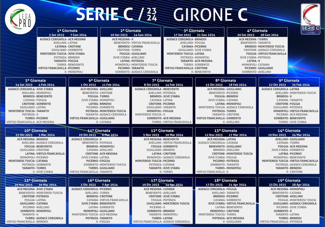 Finalmente il 3 settembre tornerà a correre il pallone sull’erba, dopo un  estate tormentata dai ricorsi e ora di tornare a parlare di campo. La stagione comincerà in casa per i falchetti che affronteranno il Monopoli. Gara subito complicata ma che potrebbe essere rinviata perché ad oggi i falchetti non sono pronti è probabile infatti il rinvio almeno delle prime due gare di campionato. Se davvero le prime due potranno essere rinviate i falchetti potrebbero ritrovarsi a debuttare contro il Benevento al “Pinto”. Una sfida che torna dopo anni e che i tifosi rossoblu’ aspettano da anni per vendicare l’ultima volta al “Vigorito”.