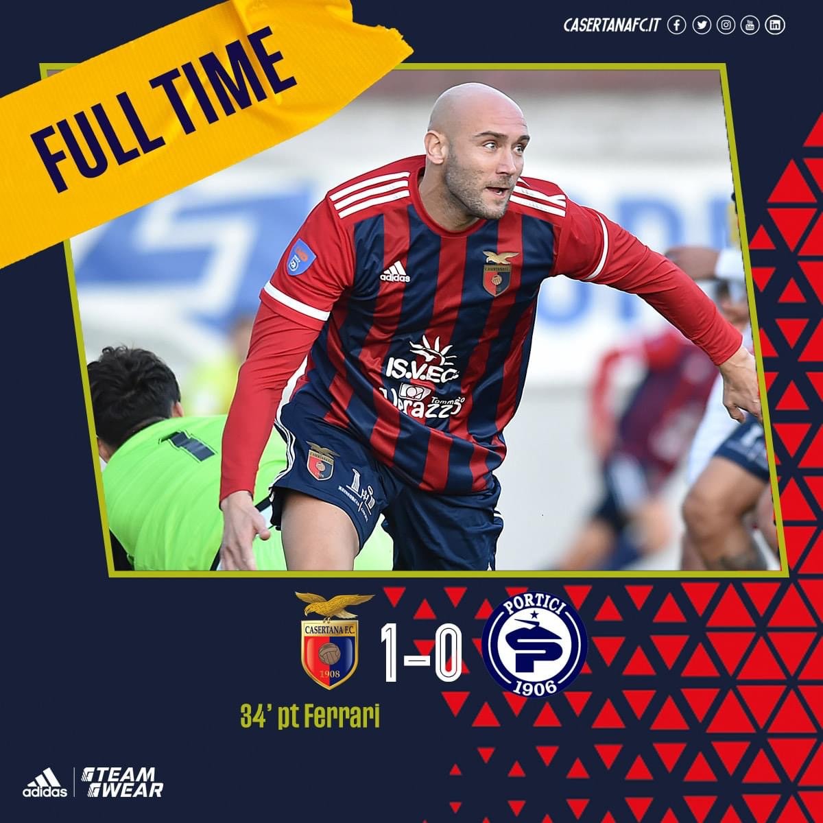 La Casertana pur non giocando la sua gara migliore è riuscita a battere il Portici e fare suo il derby. Una vittoria utile per dimenticare il Sorrento e per avvicinarsi proprio alla capolista che invece perde in quel di Cassino. Gara non molto spettacolare con i falchetti che in più occasioni potevano chiudere la gara. Alla fine la decide Ferrari che riavvicina i falchetti alla vetta della classifica