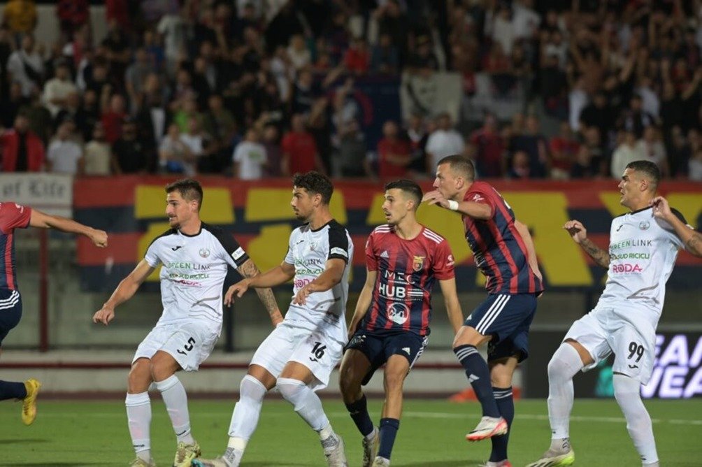 La Casertana sembra poter ottenere la prima vittoria nel recupero infrasettimanale della prima giornata, poi però cala alla distanza è ottiene solo un pari. La partita, ricordiamo, non era stata disputata per la proroga concessa ai “falchetti” in seguito al ripescaggio in C all’ultimo momento. Mister Cangelosi insiste giustamente col 4-3-3 nel tridente composto da Casoli, Tavernelli e Curcio. Proprio da quest’ultimo il gol dell’1 a 0, propiziato da uno splendido cross dalla destra di Damian (9’). Sulle ali dell’entusiasmo i rossoblù cercano il 2 a 0 in almeno un paio di nitide occasioni. Il Monopoli, dal canto suo, trova pochi spazi, trovando le occasioni migliori nell’ultimo quarto d’ora del primo tempo con la testa di Spalluto e la scorribanda pericolosissima di Morello. L’inizio del secondo tempo è appannaggio della Casertana grazie ad un tiro da fuori di Casoli che esce di un nulla (49’). Sembra una vittoria facile per i “falchetti”, ma dal 55’ la musica cambia e il Monopoli cresce. Fino a pervenire al gol: Starita la lascia a Hamlili, che se la allunga, ma riesce a servire di nuovo Starita, il quale la deve solo appoggiare in rete visto l’uscita sbagliata di Venturi (61’). Moderata esultanza per l’ex. Comincia una nuova partita, in cui sostanzialmente le squadre si rispettano e vanno avanti a fiammate. In generale, Casertana più quantitativa nel creare occasioni da gol, Monopoli più qualitativo. Si segnala al 73’ un ottimo cross di Toscano per Casoli, la cui testata va fuori di poco. Al 90’, poi, Carretta crossa dalla destra per Casoli, che controcrossa al centro trovando la testa di Montalto fuori di poco. Negli ultimi minuti alcuni svarioni difensivi in disimpegno da tutt’e due le squadre, ma il punteggio rimane sull’1 a 1. Continuiamo a sostenere questi ragazzi. Certo si aspettava di più da questa partita, ma il campionato rimane lungo e la squadra c’è in molte fasi di gioco. La vedo molto aggressiva a centrocampo, cosa che non può che essere positiva. Da migliorare la concentrazione in difesa, a volte troppo bassa. I presupposti per un campionato almeno da metà classifica ci sono.