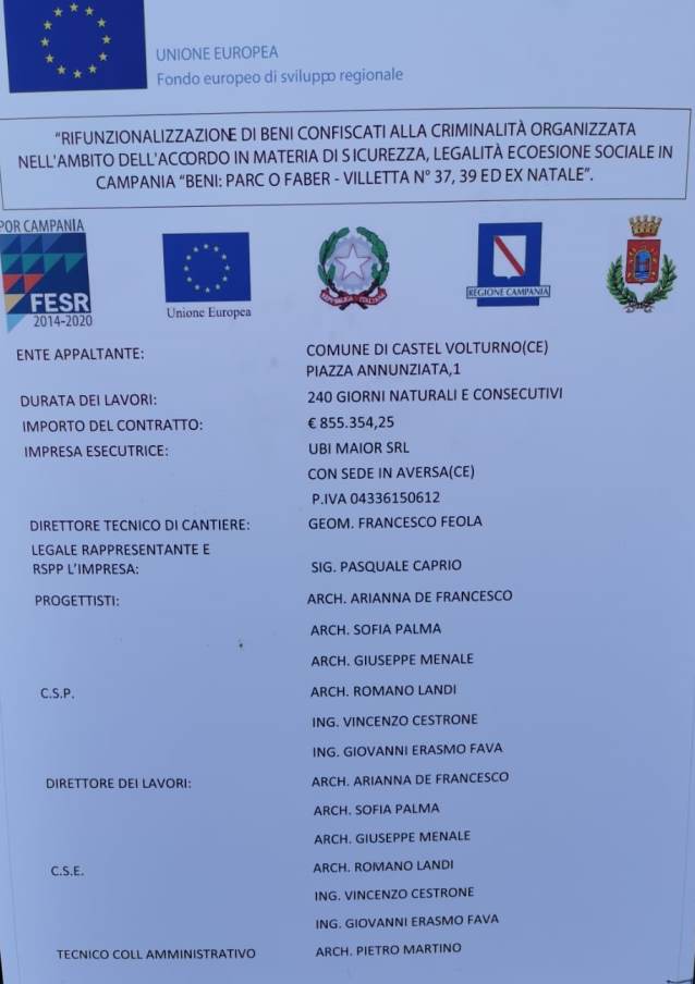 I tre progetti sono stati cofinanziati dall’Unione Europea, dallo Stato Italiano e dalla Regione Campania, nell’ambito del POR Campania Fesr 2014-2020, ed ha come oggetto la rifunzionalizzazione di beni confiscati alle mafie, siti nel Comune di Castel Volturno.