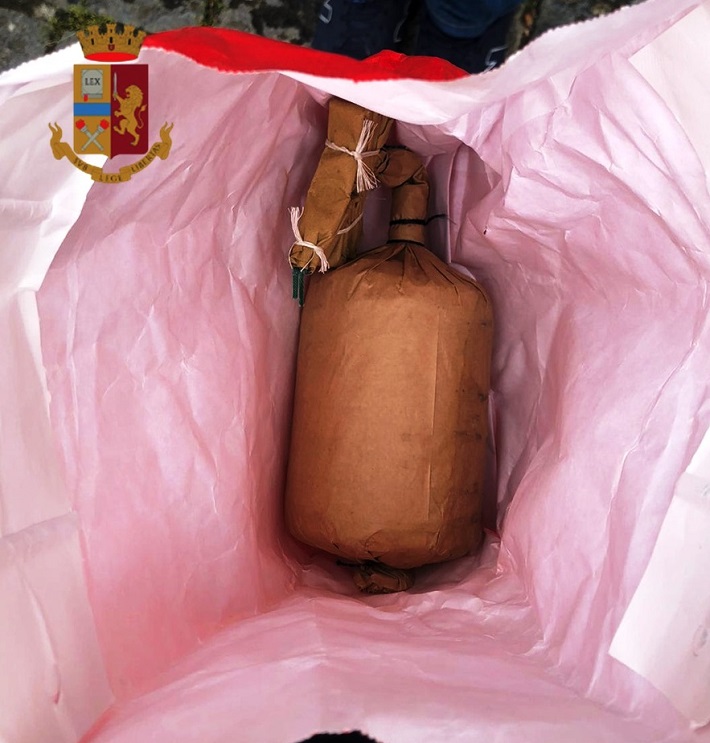 I poliziotti, con il supporto del Nucleo Artificieri dell’Ufficio Prevenzione Generale, hanno rinvenuto un ordigno esplosivo del tipo “bomba carta” del peso di circa 620 grammi.