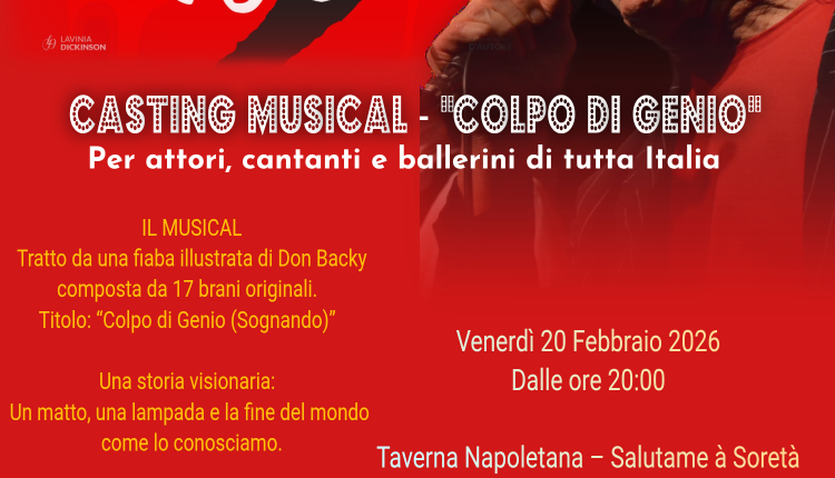 L’appuntamento è fissato per venerdì 20 febbraio 2026, dalle ore 20:00, presso la Taverna Napoletana – Salutame à Soretà, Strada San Michele 9, Aversa (CE). La partecipazione al casting è gratuita, ma è obbligatoria la prenotazione, poiché la serata prevede una cena fissa da 20 euro e i posti sono limitati. Un’occasione riservata a chi riuscirà ad assicurarsi un posto in tempo.