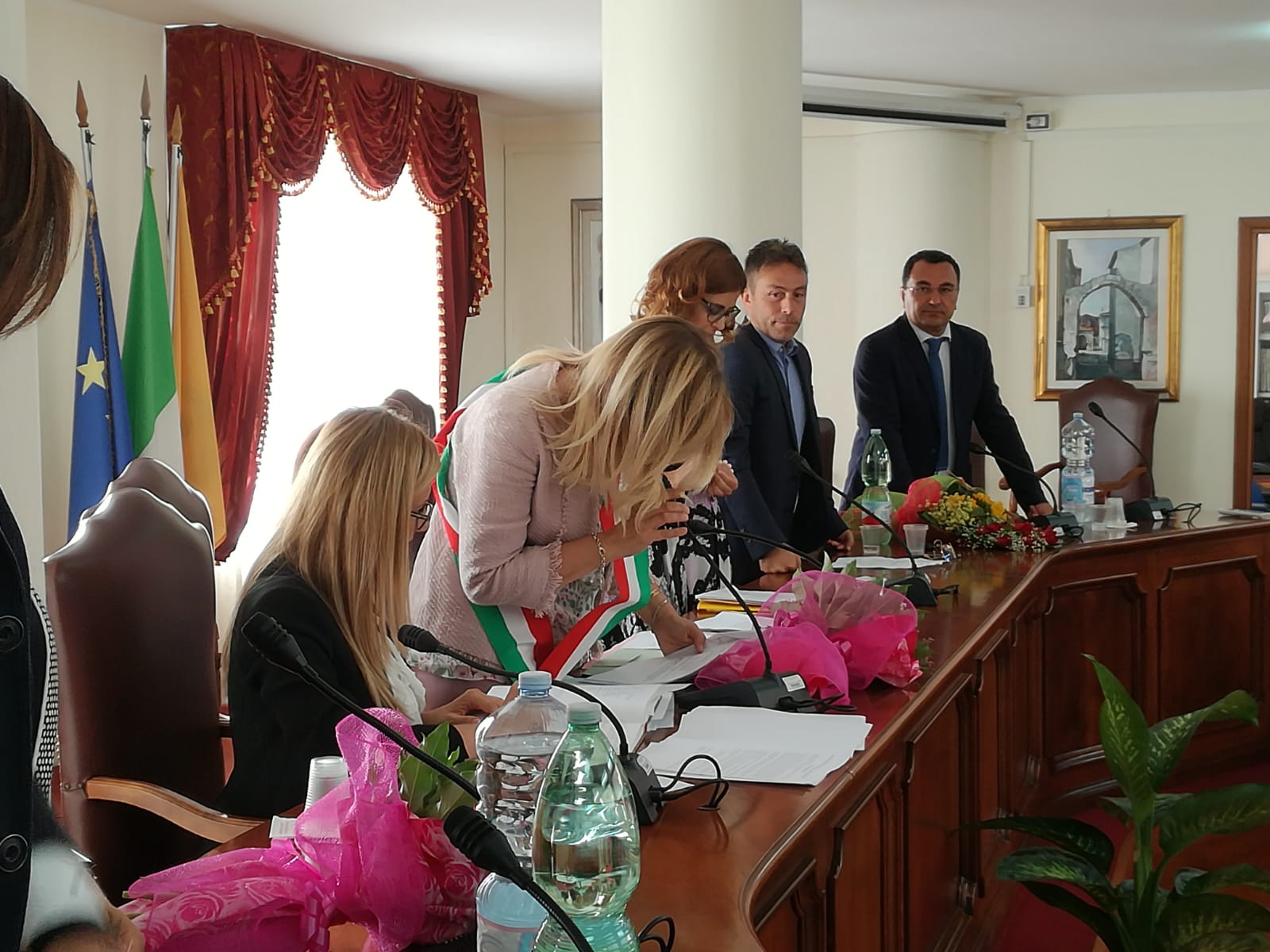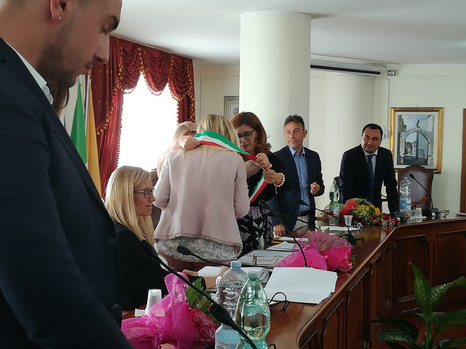 CELLOLE – Quello che si è celebrato ieri per la prima volta nella splendida cornice della Sala Consiliare di Cellole è stato il Consiglio Comunale più in “rosa” della storia del comune litoraneo. In effetti, non solo i banchi dell’emiciclo vedevano una perfetta parità di genere tra i suoi componenti e sgargianti fiori rosa posti ad abbellire i tavoli del locale parlamentino, ma i due scranni più in alto (quello di Sindaco e Presidente del Consiglio) erano entrambi occupati da donne. Una delle due, ben conosciuta dall’opinione pubblica e molto emozionata nel rivolgere il proprio discorso ai colleghi, era Cristina Compasso, eletta Sindaco dai cellolesi appena il 10 giugno scorso. Il miglior modo per descriverla è utilizzare le sue parole: “Sono una donna, una mamma, un avvocato, una di voi.” Ma la cosa che più risalta agli occhi è la sua totale estraneità alla politica sino ad oggi, la definirebbe qualcuno un volto nuovo. Il suo intervento è stato molto istituzionale e di grande apertura verso le controparti politiche: “Potrò sembrare retorica, ma sarò il Sindaco di tutti. In quest’aula il posto privilegiato lo avrà anzitutto la discussione, perché è solo con essa che la democrazia può diventare sempre più forte.” E ancora: “Il sindaco è colui che deve guidare il Comune in modo giusto, io ce la metterò tutta per fare ciò.” Alla fine, l’emozione della Sindaca appena insediata lascia il posto alle lacrime quando il ricordo è per il papà Franco Compasso, europarlamentare del PLI, storico, giornalista e avvocato, oltreché figura di riferimento per il territorio aurunco, scomparso nel 1997: “Questo giuramento lo dedico a mio padre, lui e mia madre mi hanno insegnato la forza dell’umiltà.” Dopo l’annuncio di coloro che sarebbero andati a ricoprire il ruolo di vicesindaco e assessore (https://www.belvederenews.net/cellole-tutti-i-nomi-nasce-la-giunta-compasso/ apri il link per vedere i nomi), la neo-eletta Presidente del Consiglio Marianna Mauriello è passata alla discussione delle linee programmatiche dell’amministrazione per il quinquennio 2018-2023. La sindaca ha citato nel suo discorso, tra i punti più importanti: grandi investimenti sul turismo, spending review per gli apparati amministrativi, trasparenza, innovazione tecnologica, approvazione del PUC e di un Piano di Sviluppo Turistico. Quando la parola passa al capogruppo di minoranza, il candidato sindaco sconfitto Francesco Lauretano, quelli che si presumevano toni aspri e accesi si rivelano invece distesi e pacati: “Il nostro sarà sempre un confronto e mai uno scontro. Faremo il nostro dovere di opposizione in modo vigile e collaborativo, nella speranza di riunire sotto una buona amministrazione un paese diviso a metà.” E addirittura precisa sull’astensione alla votazione per il Presidente del Consiglio: “La nostra astensione alla votazione che vedeva candidata un’unica persona, e cioè la dr.ssa Marianna Mauriello, non riguarda assolutamente la figura proposta. Abbiamo preferito astenerci da un ragionamento portato avanti solo dalla maggioranza. La nostra è un’astensione d’apertura.” Insomma, parole che sembrano lontane dalle accuse e i veleni della campagna elettorale. Infine, con l’elezione della commissione elettorale, nella quale sono risultati eletti Pecoraro e Manfredi per la maggioranza e Sorgente per l’opposizione, si chiude tra gli applausi di un pubblico entusiasta la prima seduta di Consiglio Comunale dell’era Compasso.