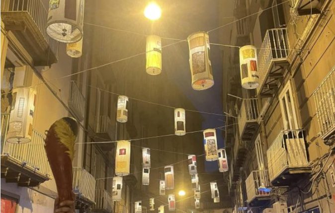 Cento lanterne d’autore per illuminare la via dei librai. Si tratta di un progetto realizzato l’anno scorso, nel giugno del 2023, denominato “Questi miei Fantasmi”, per omaggiare il grande Eduardo De Filippo.