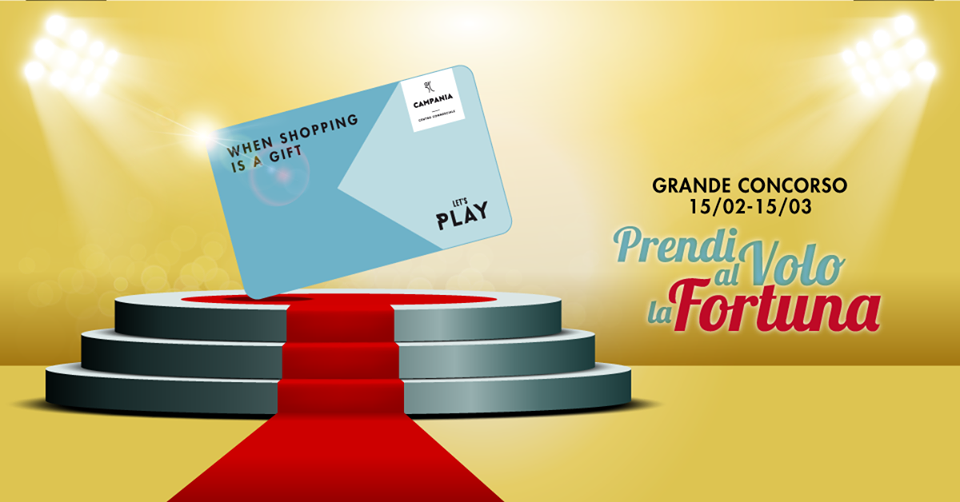 MARCIANISE – Il Centro Commerciale Campania propone da sempre diverse iniziative per soddisfare tutte le necessità dei suoi clienti e anche per farli divertire. In questo caso tentando la fortuna con un concorso a premi. Prendi al volo la Fortuna è il nuovo concorso che con diverse modalità di gioco sia on line che off line, permetterà di poter vincere da 5 a 12 mila Euro con estrazione finale per un montepremi pari a 35 mila Euro. Il Concorso prevede l’utilizzo di piattaforme altamente tecnologiche come è nello stile del Centro Campania.