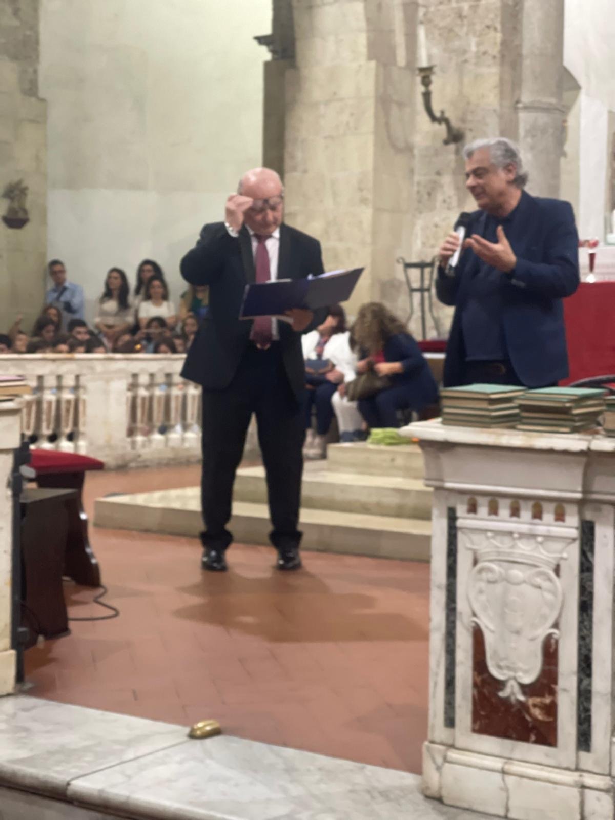 Sabato 25 maggio dalle ore 19.00, nella splendida cornice della monumentale chiesa di Santa Maria a Piazza di Aversa, si è svolta la cerimonia di premiazione dei poeti, scrittori e disegnatori in erba. Ideato, organizzato e condotto dall’eclettico scrittore aversano Armando Pirolli, che ha curato l’evento in ogni piccolo particolare. I giovani studenti sono arrrivati in finale dopo aver superato una difficile selezione per l’alto numero di adesioni. Quattro le sezioni premiate, la poesia, il racconto, il disegno e il lavoro di classe e/o di gruppo. Inoltre sono stati assegnati due premi speciali in memoria del Vescovo Mons. Giovanni Gazza e del Parroco Mons. Don Salvatore De Filippo. Per l’edizione 2024 hanno partecipato studenti di Giugliano, Orta di Atella, Succivo, Sant’Arpino, Casaluce, Lusciano, Trentola, Casapesenna, Casaluce, Capodrise, Aversa e con la partecipazione straordinaria dei ragazzi di “Villa Liberazione” con sede in un bene confiscato a Casal di Principe e accompagnati dalle Dottoresse A. Manzi, D. Carretta, D. Fabrazzo e S. Vastante. Con la preziosa partecipazione di associazioni e fondazioni del nostro territorio tra cui :” libreria Il Dono, nella persona del prof. Fortunato Allegro, la Fondazione” Aurora ” con la vice presidente Dottoressa Eufrasia Cannolicchio, l’Associazione Culturale Attori per Caso con il Presidente Lorenzo Molitierno, la casa editrice Pasquale Gnasso editore, l’Accademia Raffaele Viviani di Napoli con l’autore Francesco Gemito, le Ditte Capasso Event di Carinaro con le sue creazioni, e la Mimabi Flower di Aversa. La giuria è stata costituita dal Parroco Don Gaetano Rosiello, dal Diacono Don Pasquale Dello Iacono, dal Presidente di Giuria avv. Enzo Lombardi, dalla Prof. Mariella Stabile, Prof. Carlotta Severino, Prof. Carla Caputo, Prof. Domenico Andreozzi, Prof. Pasquale Gnasso. Tanti Ospiti presenti per onorare questo incontro Culturale : Giuseppe Improta creatore di Moda e fotomodello, l’Avv. Pasquale Fedele, Angelo Cirillo della Conpasuni, Dott. Alessandro Gatto della Vigilanza WWF provincia di Caserta, lo scrittore Francesco Gemito, il Dott. Sergio D’Ottone Presidente del Touring Club Italiano, l’attrice Carmen Pommella, la Dottoressa Rachele Arena responsabile biblioteca Università Vanvitelli, Dott. Rosanna Santagata presidente Pro Loco di Aversa, Dott. Falco Mariangela Dirigente Medico UOSM 17 /18 Aversa, la Dirigente Scolastica prof. Caterina Genovesi, dal programma The Voice Senior il prof. Giuseppe Mariniello, l’organizzatrice di eventi Culturali Dottoressa Rachele Romano, la Dottoressa Natalina Quarto presidente FIDAPA, la Dottoressa Alessandra Mascia per l’Inedito Letterario, il Dott. Giuseppe Lettieri Direttore Responsabile di Nerosubianco, Speranza Cardillo per La Rampa, il chitarrista Massimiliano Cecala, la dirigente Medico Dottoressa Elena Morrone della UOSM 17 /18 di Aversa e la cantautrice Vincenza Purgato. Dopo la cerimonia di premiazione, è stata inaugurata negli spazi della casa canonica la mostra di tutti i lavori arrivati all’attenzione della Giuria.Questi i nomi dei ragazzi che hanno conquistato il Podio. Per la Sezione Racconti :1)Corvino Ginevra Istituto Pascoli, 2) Gruppo IV G Liceo de Carlo di Giugliano, 3) Iamicella Francesca Pia Istituto Pascoli. Per la Sezione Disegno : 1)Di Filippo Andrea Istituto Gaglione, 2) Esposito Salvatore Istituto D. Cimarosa, 3) Mormile Federica plesso Villano Orta di Atella. Premio Speciale in memoria di Mons. Salvatore De Filippo assegnato a Giosuè Piccolo. Premio Speciale in memoria del vescovo Mons Giovanni Gazza assegnato ad, Anastasia Pascarella. Sezione Poesia :1) Palmieri Matteo liceo classico Cirillo, 2) Rammairone Emmanuel istituto Pascoli , 3) Romano Sarah istituto Pascoli. Per la Sezione Lavori di classe e /o di gruppo : 1) Gruppo ITCG Andreozzi, 2) Classe III C istituto Cimarosa, 3) Classi 1A_B_E Plesso Villano Orta di Atella. Targa Fondazione Aurora assegnata alla scuola Villano di Orta di Atella, targa Pasquale Gnasso editore assegnata all’Istituto Comprensivo di Casapesenna, targa Fondazione Aurora assegnata all’istituto Gaglione di Capodrise, targa Attori per Caso assegnata all’Istituto Rocco Cav. Cinquegrana di Sant’Arpino, targa Accademia Raffaele Viviani assegnata all’Istituto D. Cimarosa di Aversa. Un riconoscente grazie ai Volontari della Parrocchia Santa Maria a Piazza per il loro prezioso contributo. L’appuntamento è per l’edizione 2025.