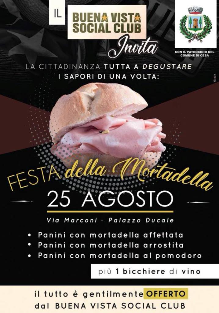 CESA – Nell’ambito delle iniziative estive, sabato 25 agosto 2018 è prevista lo svolgimento della Festa della Mortadella. La manifestazione, si terrà in serata in Via Marconi, e è organizzata dal circolo “Buena Vista Social Club”, con il patrocinio del comune di Cesa. Nel cartellone organizzato dall’Amministrazione Comunale, a cura del consigliere comunale delegato agli eventi Nicola Autiero, è prevista questa serata, con la possibilità di degustare gratis mortadella affettata, arrostita e al pomodoro, il tutto accompagnato da vino asprinio, per riassaporare i sapori di un tempo. L’evento gode del Patrocinio del Comune di Cesa, guidato dal Sindaco Enzo Guida.