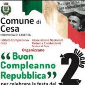 CESA – L’Amministrazione comunale di Cesa, in collaborazione con l’Istituto Comprensivo di Cesa e con l’Associazione Nazionale Reduci e Combattenti di Cesa ha promosso, anche quest’anno, il concorso “Buon Compleanno Repubblica”. In occasione della Festa del 2 giugno, giornata in cui si celebra la Repubblica Italiana, è stata promossa questa iniziativa che ha come scopo principale il coinvolgimento dei giovani.