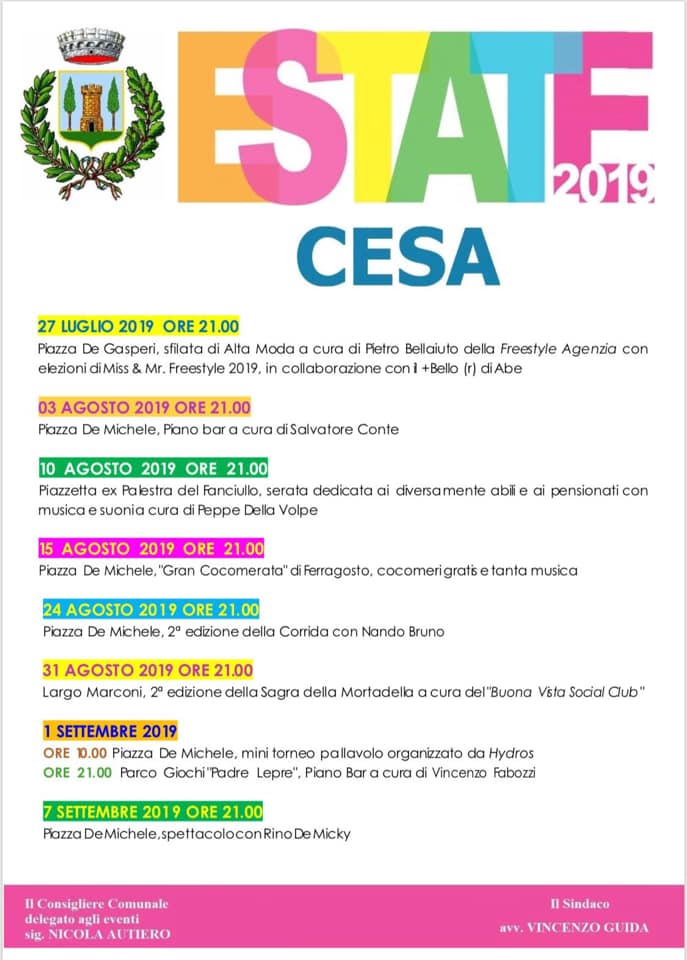 Cesa. Presentato dal consigliere comunale delegato agli eventi Nicola Autiero il programma per le iniziative estive di quest’anno.
