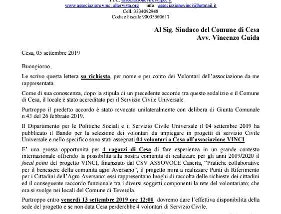 Il sindaco di Cesa, militante del PD, continua nell’ attività e nel frattempo va a presenziare a vari comizi, mentre a causa sua molti giovani cesani stanno perdendo l’ opportunità di svolgere il servizio civile.
