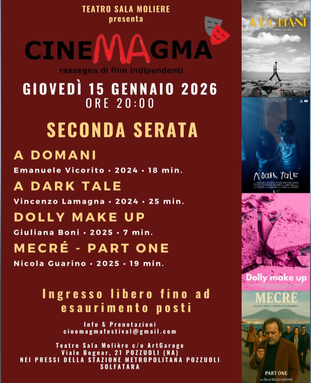 DOMANI AL TEATRO SALA MOLIḔRE DI POZZUOLI SI TERRÀ IL SECONDO APPUNTAMENTO CON LA VI EDIZIONE DI CINEMAGMA